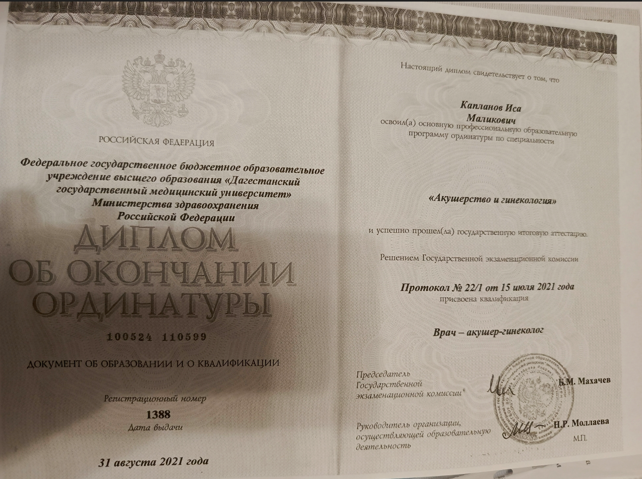 Федеральное государственное бюджетное образовательное учреждение высшего образования "Дагестанский государственный медицинский университет" Министерства здравоохранения Российской Федерации г. Махачкала